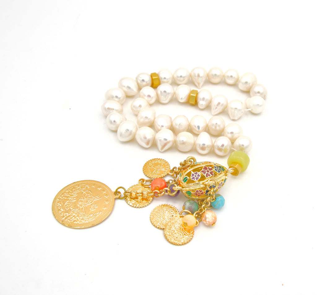 Elevate your spiritual practice with our exquisite HANDMADE Islamic prayer beads, beautifully crafted from lustrous FRESH WATER PEARL and high quality 18 K GOLD PLATED accessories.
